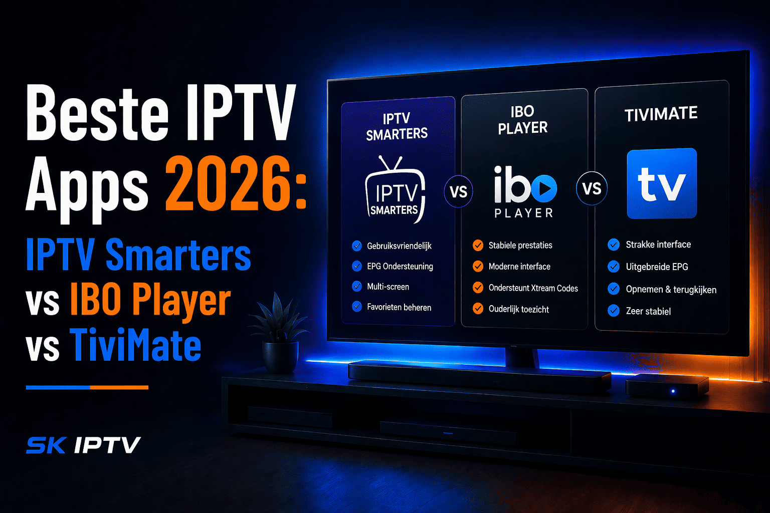 Een goed IPTV abonnement is de helft van het verhaal — de app die je gebruikt bepaalt grotendeels je kijkervaring. In 2026 zijn er drie grote spelers: IPTV Smarters Pro, IBO Player Pro en TiviMate. In dit artikel vergelijken we ze eerlijk zodat jij de beste keuze kunt maken.
